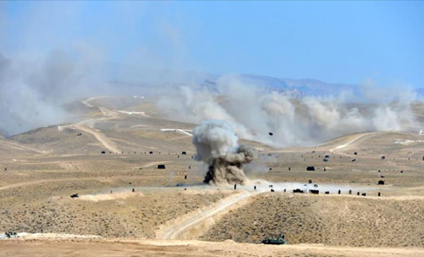 Türk ve Azerbaycan Silahlı Kuvvetlerinin Nahçıvan'da gerçekleştirdiği ortak askeri tatbikatta temsili düşman hedefleri kara ve havadan vuruldu.